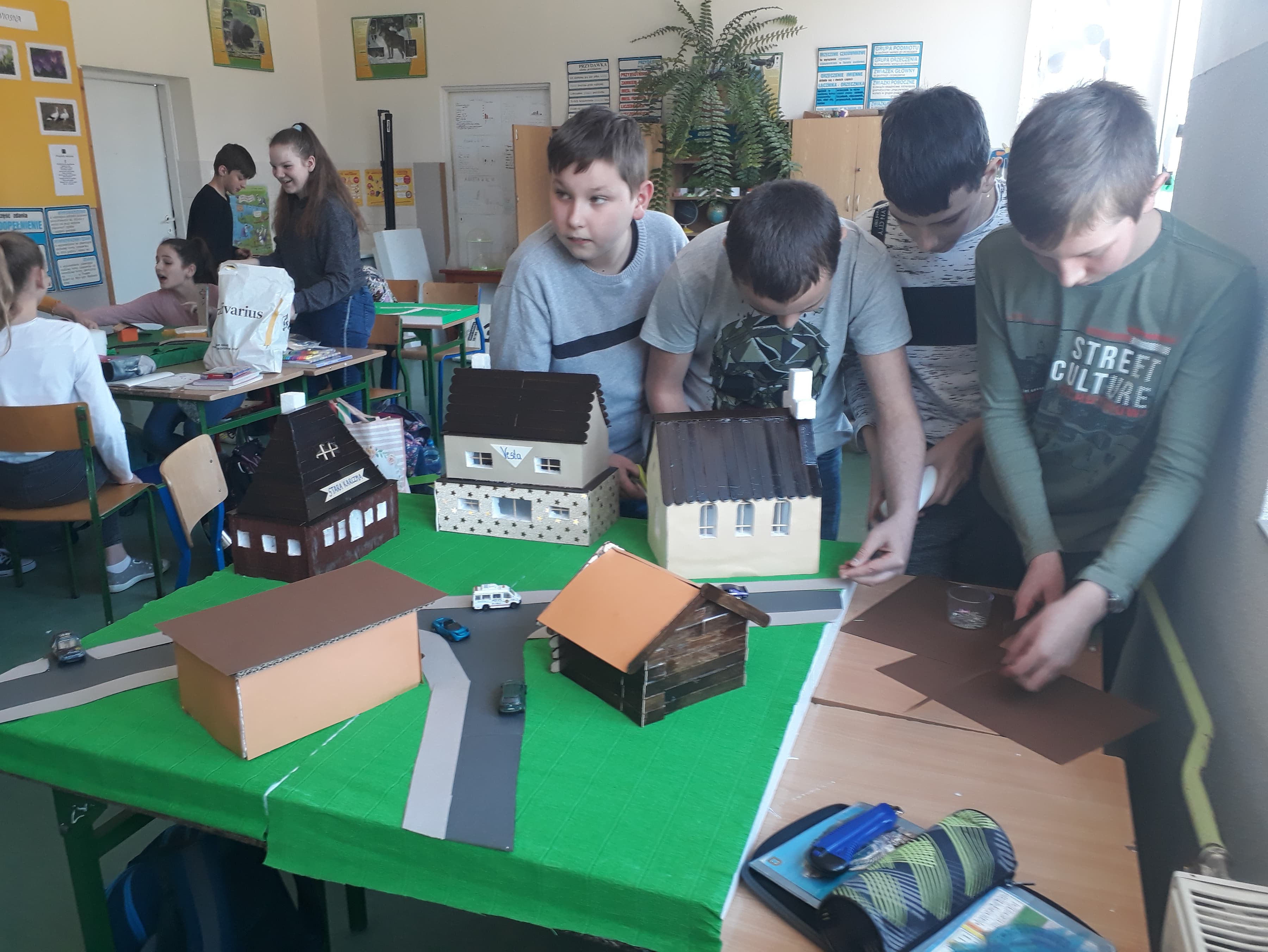 Jak co roku klasa VI pod czujnym okiem nauczyciela przyrody p. Magdaleny Szumlas-Wiewióry przygotowuje serię projektów. Pierwszy projekt zakładał zrobienie makiety pt. "Mapa najbliższej okolicy". Priorytetową czynnością, z jaką uczniowie musieli się zmierzyć to wybranie odpowiedniej skali, w której chcieli przedstawić dany wycinek terenu. Następnym krokiem było dobranie odpowiednich materiałów, aby w sposób rzeczywisty odwzorować obiekty, drogi, rzeki, tereny zielone itp.. Kolejna czynność to stworzenie makiety. Efekty pracy uczniowie zaprezentują, wystawiając makiety na głównym holu, tak by wszyscy uczniowie, pracownicy szkoły, a także rodzice mogli je zobaczyć. Zapraszamy do oglądania naszych prac.
