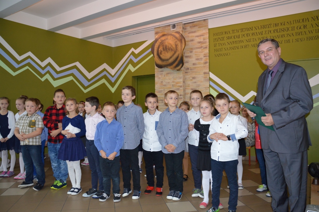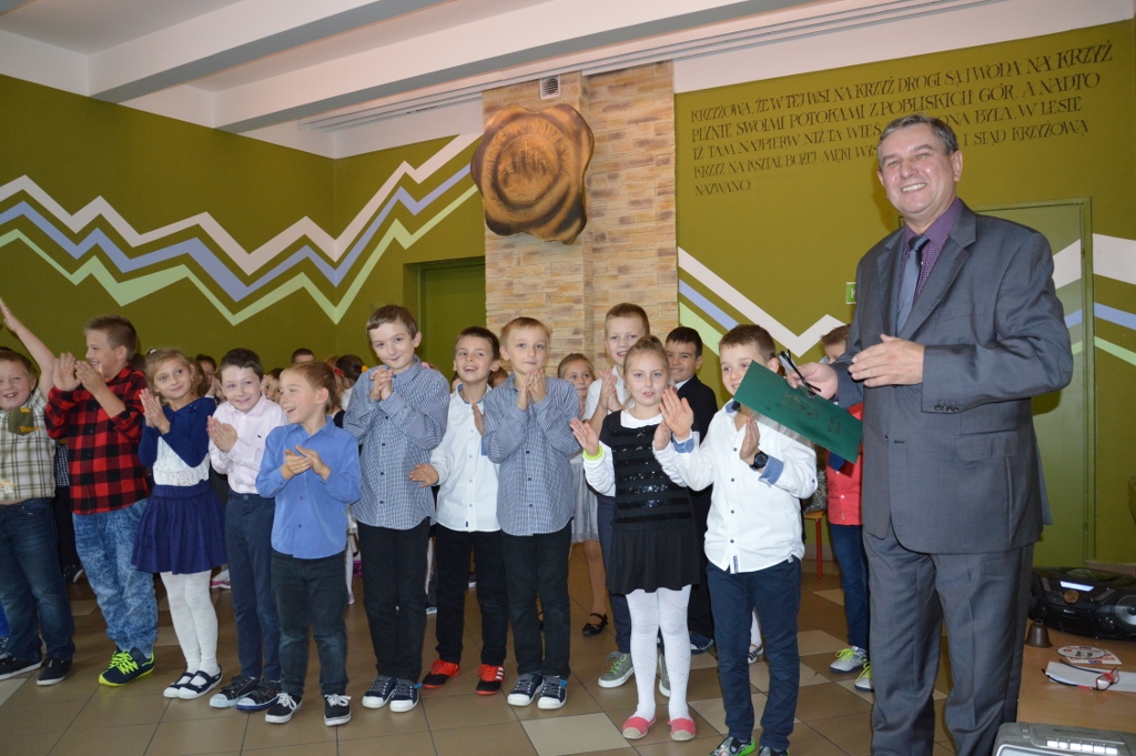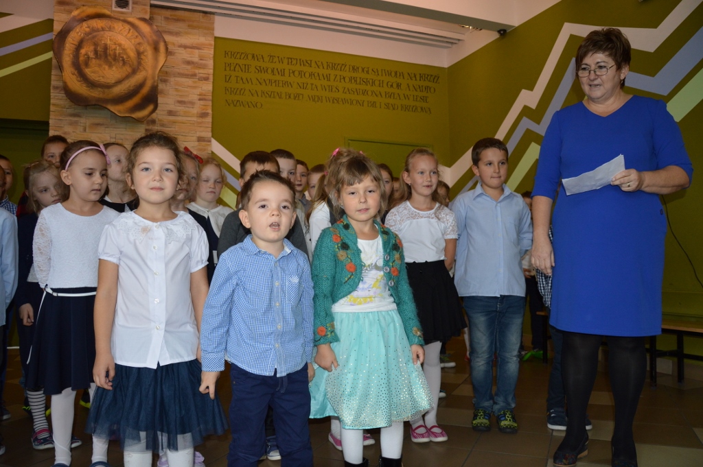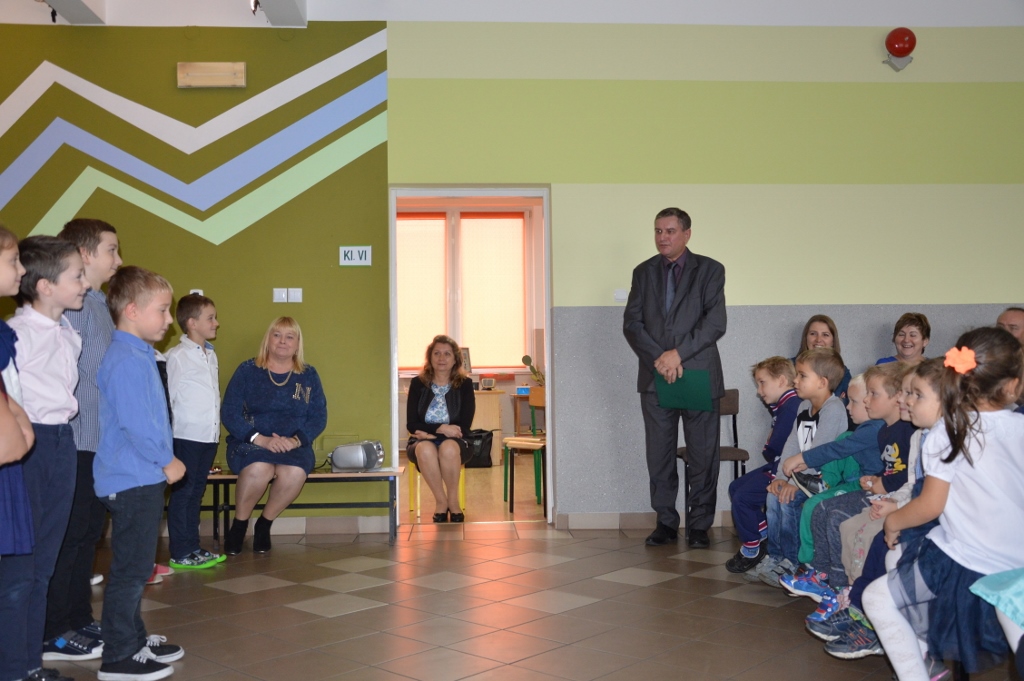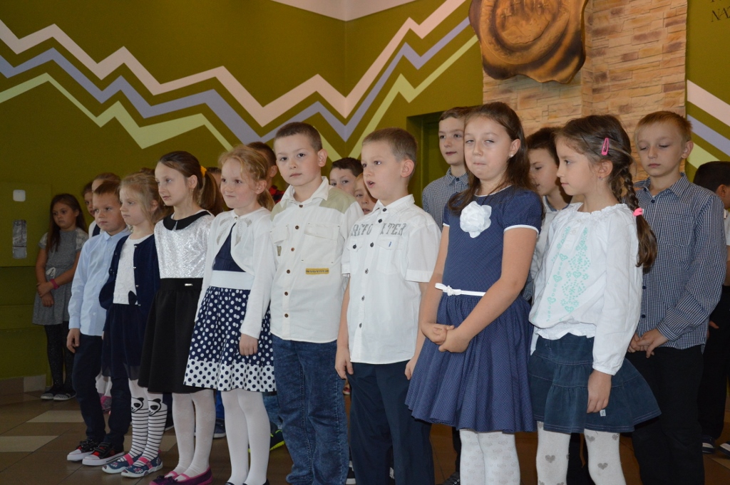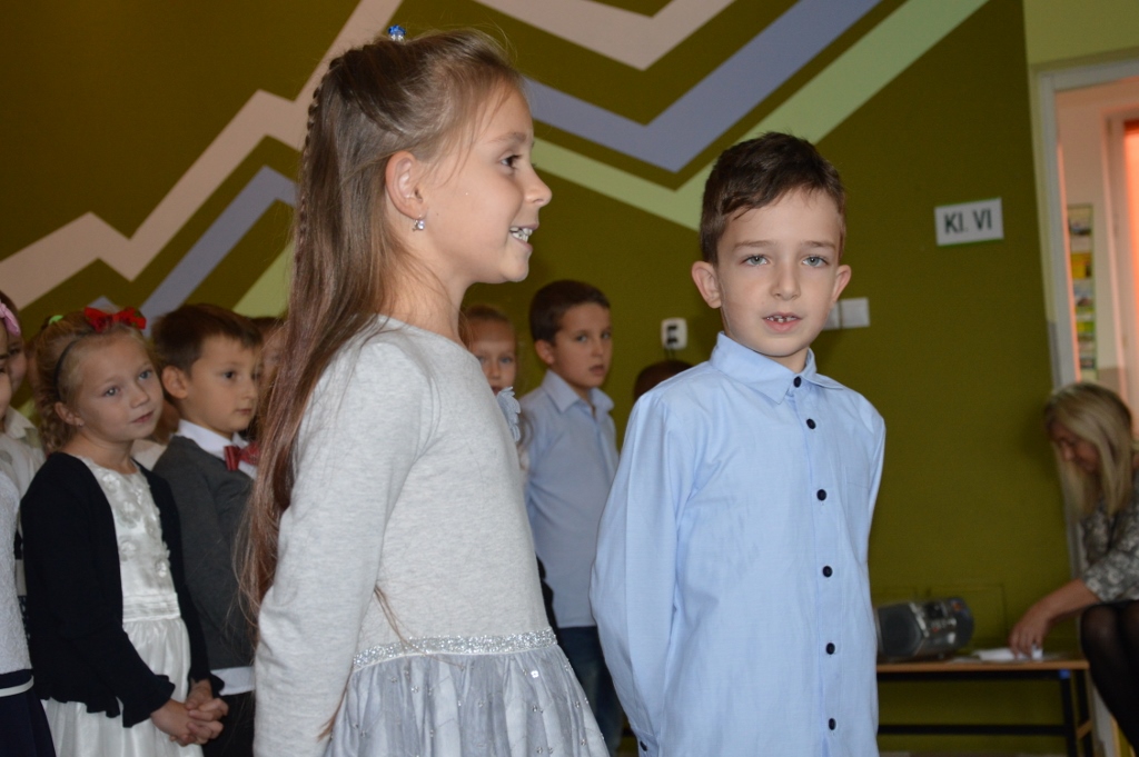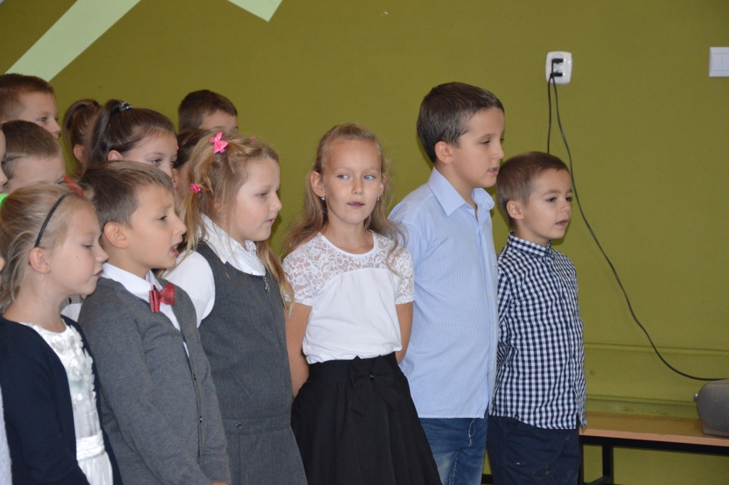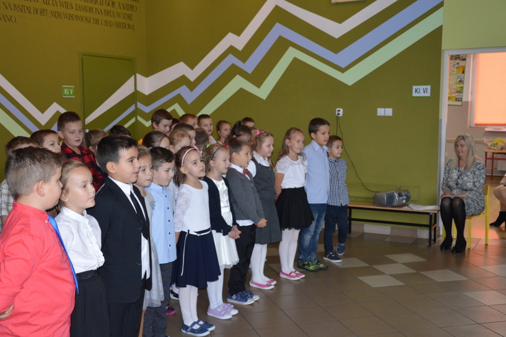 W piątek, 13 października, w szkole miała miejsce uroczysta akademia z okazji Dnia Edukacji Narodowej - nazywanego Dniem Nauczyciela. Miłym akcentem rozpoczynającym spotkanie były życzenia złożone przez przedszkolaków. Program artystyczny, na który składały się piosenki, wiersze oraz humorystyczne scenki, przedstawili najmłodsi uczniowie.