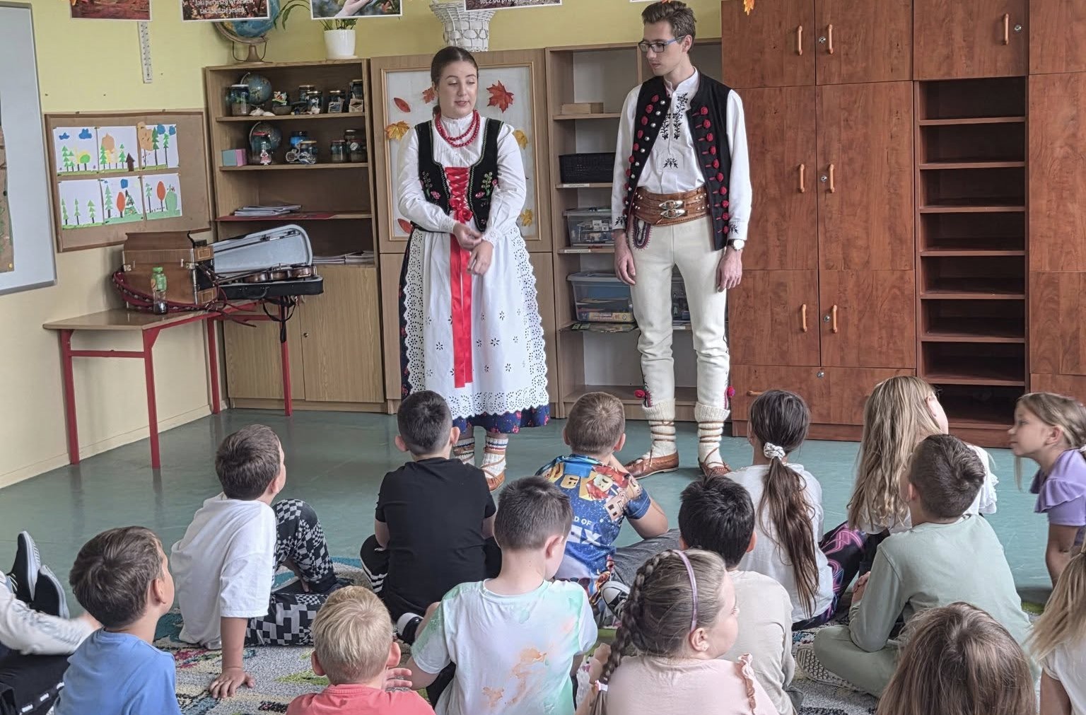 26. września uczniowie klasy pierwszej, drugiej i trzeciej uczestniczyli w warsztatach edukacyjnych pt. "Muzyka górali żywieckich", prowadzonych przez Panią Weronikę Witas oraz Pana Marcina Pierlaka. Było to jedno z wielu wydarzeń realizowanych w ramach projektu "Z pradziadami - góralami" przez Fundację Dobry WIDOK. Uczniowie naszej szkoły biorą udział we wspomnianym projekcie i dzięki temu mają możliwość poszerzania swojej wiedzy na temat tradycji i zwyczajów w naszym regionie oraz ich kultywowania.