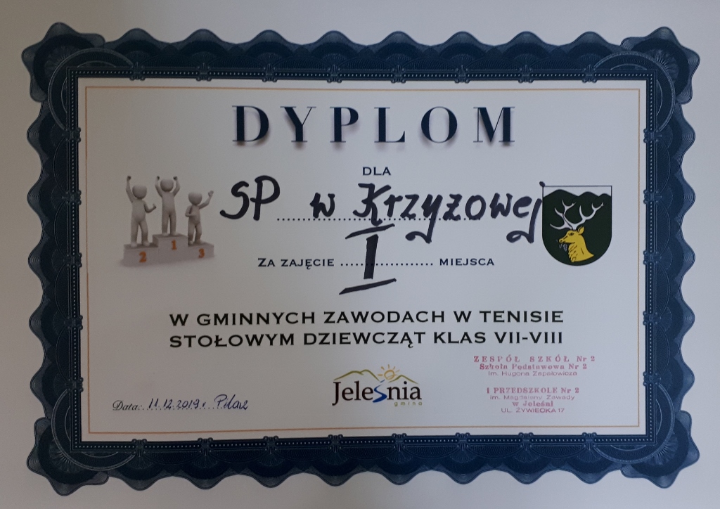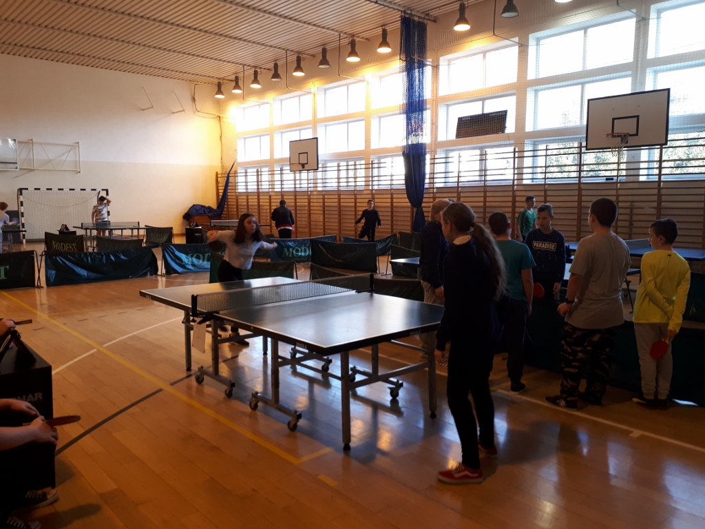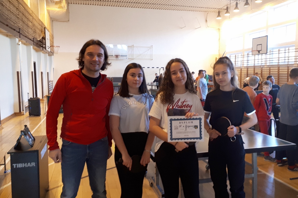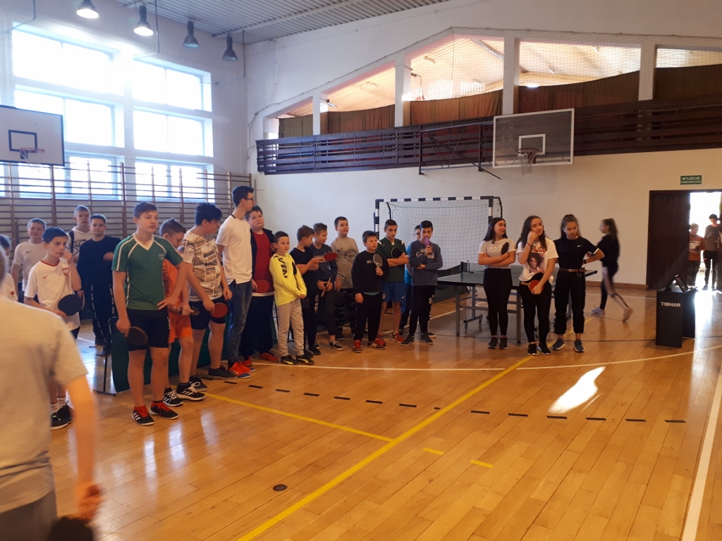 11.12.2019 w Jeleśni odbyły się gminne zawody w tenisie stołowym. Naszą szkołę reprezentowały uczennice ósmej klasy w składzie: Aleksandra Góra, Marta Witas, Kamila Dendys. W losowaniu wypadło nam zmierzyć się ze szkołami z Przyborowa oraz z Jeleśni. Nasza drużyna pokonała rywalki i w rezultacie wygrała całe zawody. Tym samym weźmiemy udział w zawodach powiatowych w Gilowicach, reprezentując Gminnę Jeleśnia. Gratulujemy !