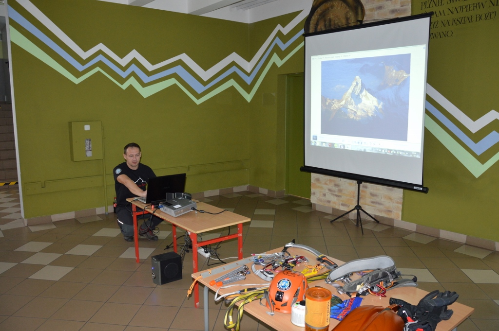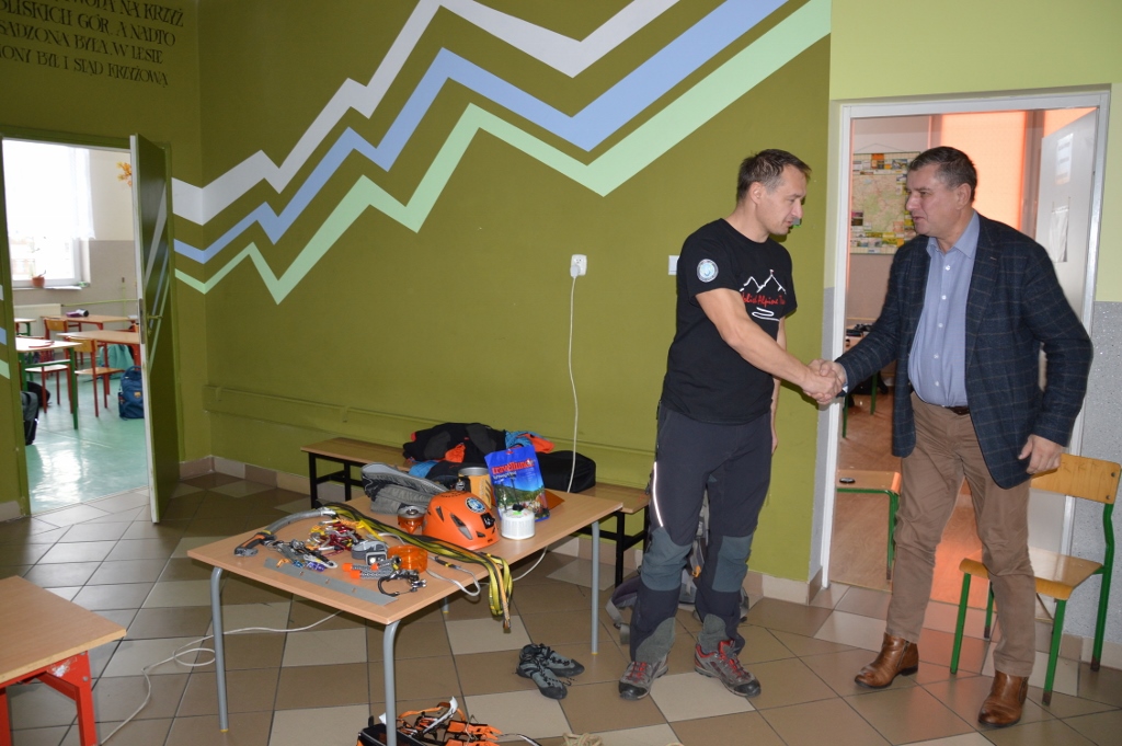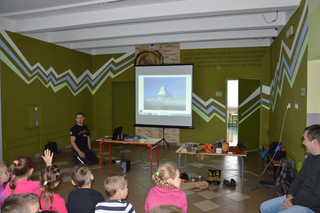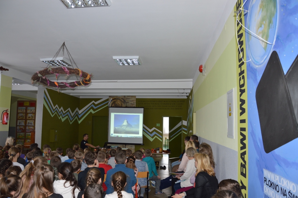 21 października uczniowie szkoły podstawowej i gimnazjum wzięli udział w spotkaniu z alpinistą - członkiem grupy Team Polish Alpinist. Mieszkający w Jeleśni pan Paweł Jeruzalski najpierw opowiadał o swojej pasji a następnie prezentował filmy ze swoich wypraw w Alpy. Na zakończenie uczniowie mieli okazję obejrzeć sprzęt, który jest wykorzystywany w trakcie zdobywania górskich szczytów. Po prezentacji gość odpowiadał na pytania uczniów.