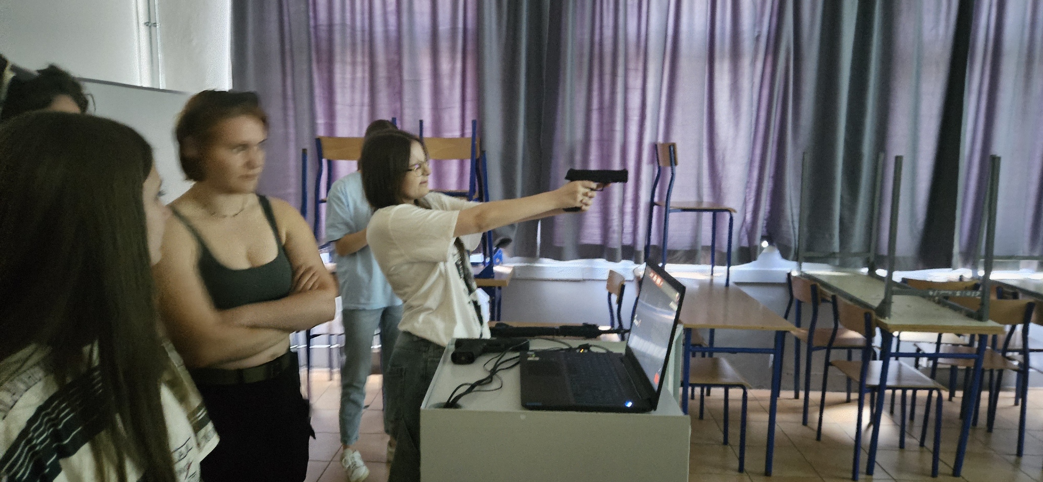 Po części teoretycznej, pod nadzorem instruktorów, ósmoklasiści  mieli okazję oddać kilkanaście strzałów z broni pneumatycznej. Dużym zainteresowaniem wśród uczniów cieszyła się strzelnica wirtualna. Tutaj strzelanie odbywało się za pomocą lasera, co zapewniało bezpieczny i realistyczny trening. Dla wielu uczniów była to pierwsza taka okazja i wzbudziła wiele emocji.