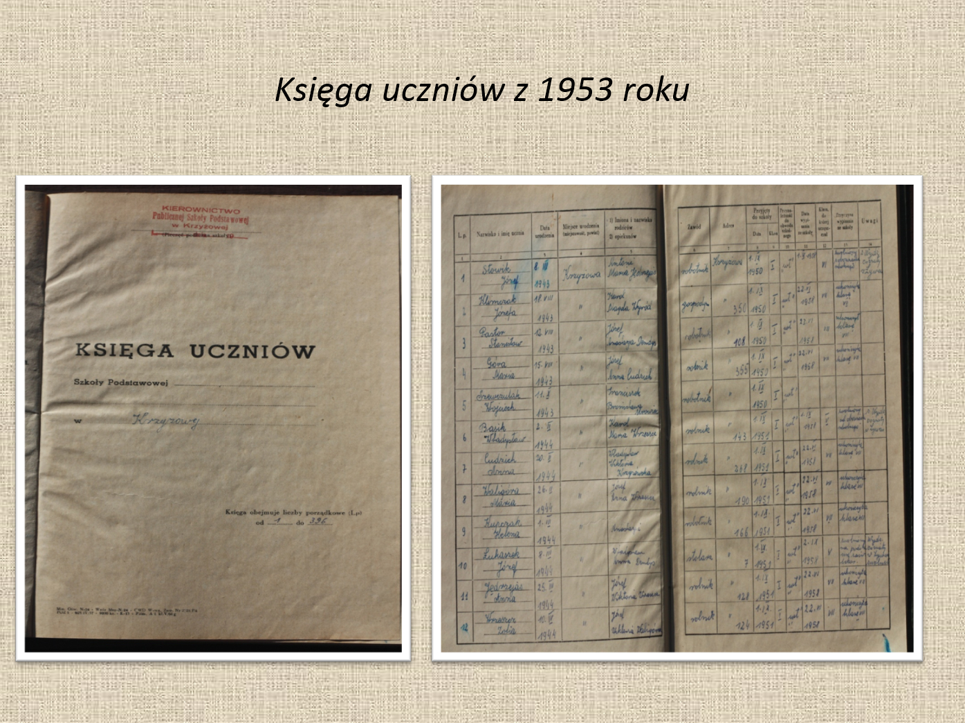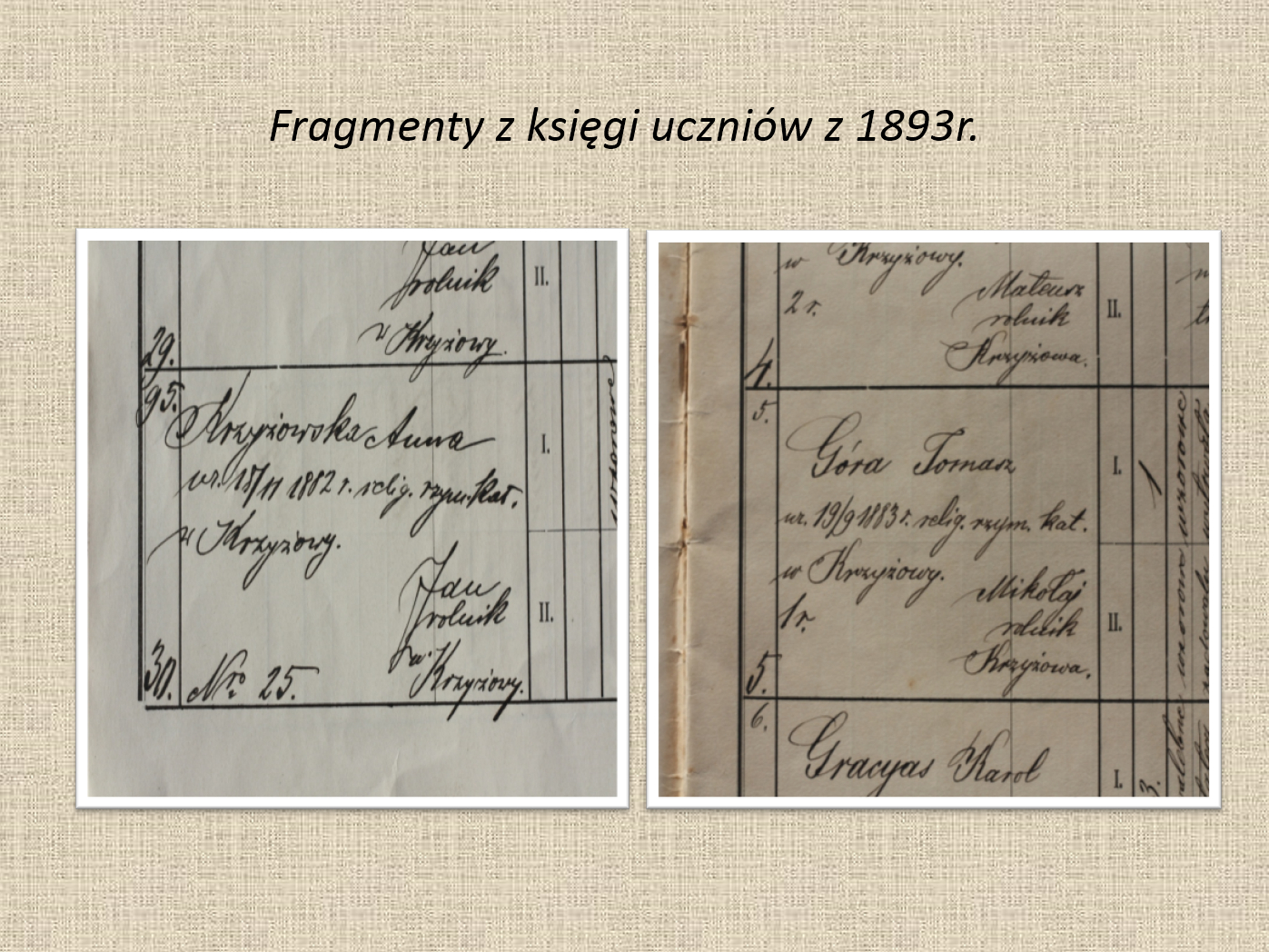 Edukacja szkolna w Krzyżowej na starej fotografii