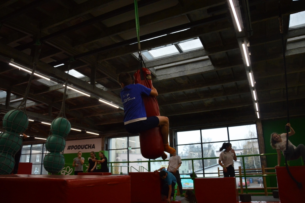 Uczniowie mieli okazję sprawdzić swoje umiejętności akrobatyczne igimnastyczne, wykonując przewroty i salta na batutach i ścieżkach, nauczyć się równowagi i koordynacji ruchów na torze przeszkód GOninja, trenować swoją wytrzymałość w basenie z gąbkami oraz popracować nad swoją kreatywnością, układając przeszkody i pokonując je w efektywny i szybki sposób.Była to jednak nie tylko nauka, ale przede wszystkim wielka przygoda i świetna zabawa.